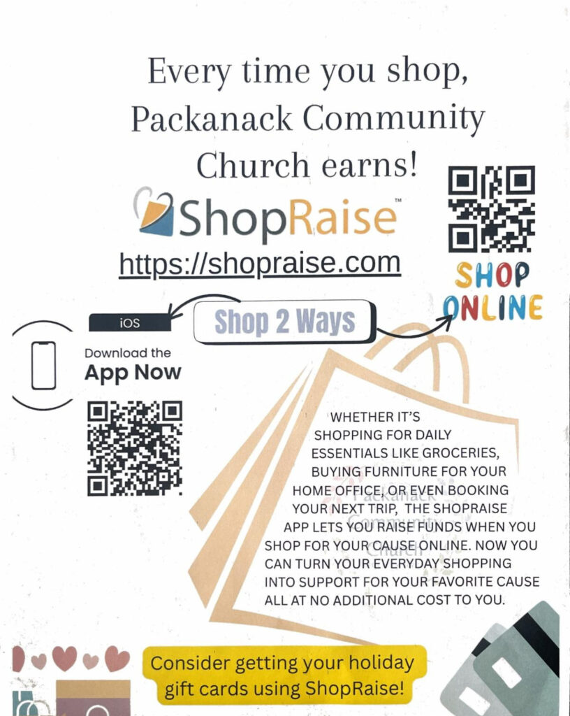 Use ShopRaise and give back to Packanack Community Church at no cost.