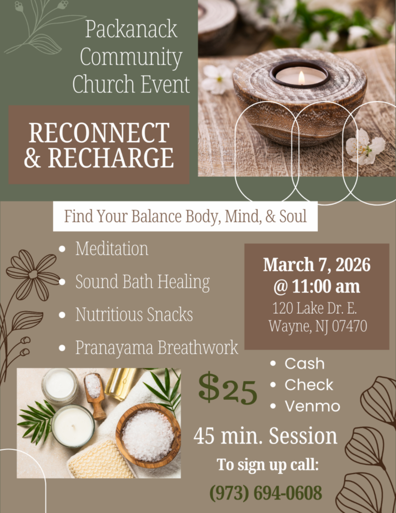 Meditation, Sound Bath Healing, Nutritious Snacks, Pranayama Breathwork. $25 for 45 minute session. To sign up call 973-694-0608.